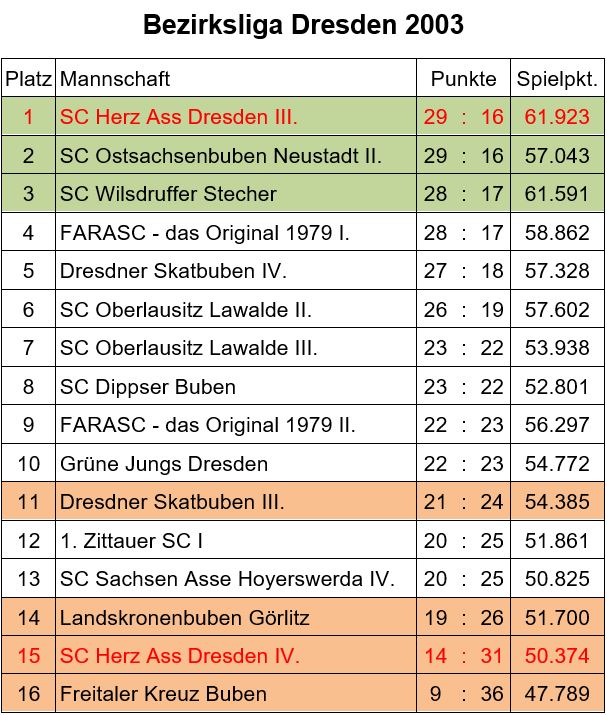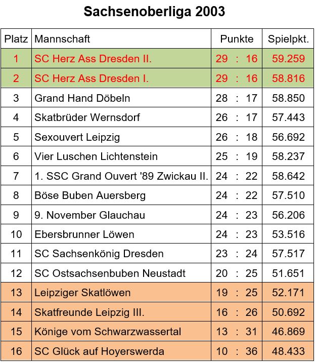 Ligaergebnisse 2003