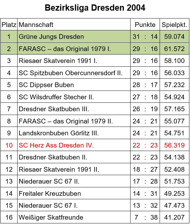 In der Bezirksliga West der VG Dresden schafft die 4. Mannschaft am Ende Platz 10.